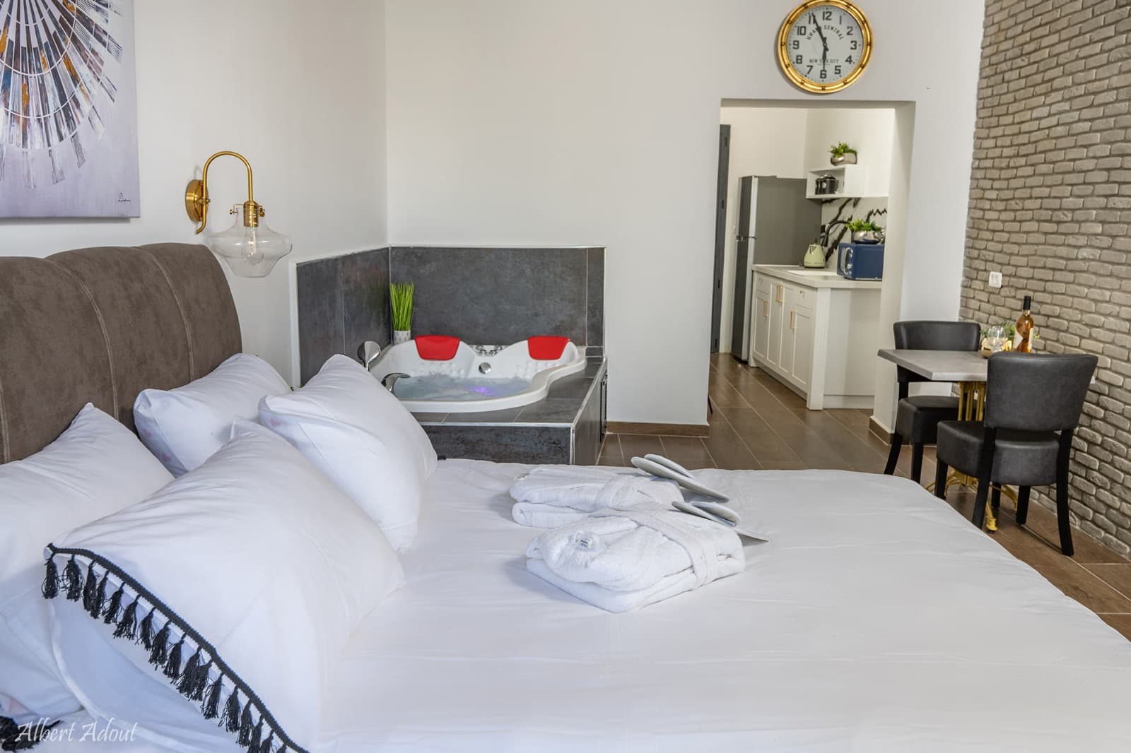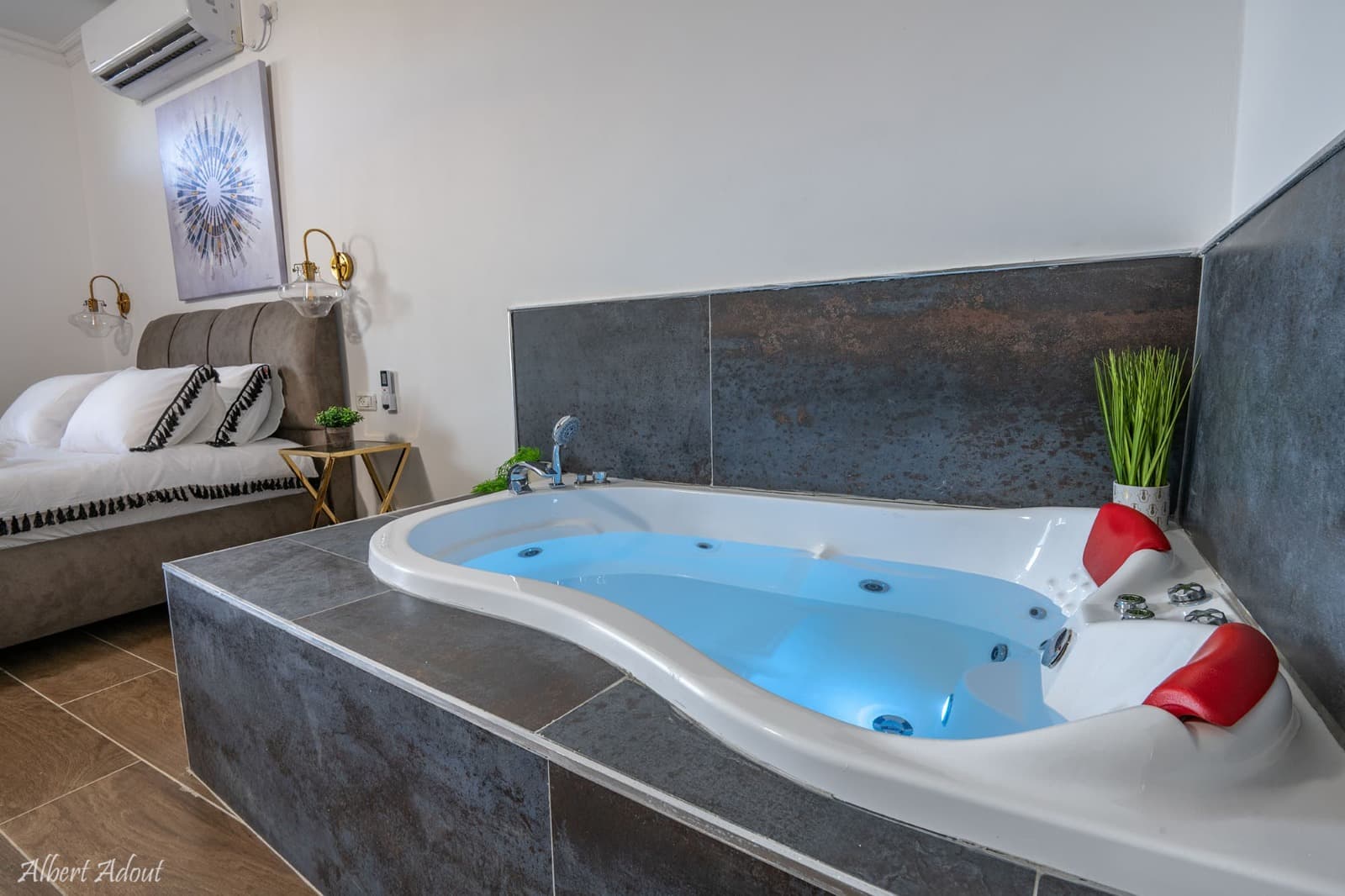 הסוויטות הזוגיות בגודל 32–35 מ"ר מעניקות מרחב אינטימי ומסודר, בעוד הסוויטות המשפחתיות בגודל 55–70 מ"ר מספקות חלל גדול ונוח למשפחה המבקשת לשהות בטוב טעם. בחדרים ישנה מיטה זוגית מפוארת, חלקן מיטות יהודיות, לצד מיזוג אוויר, מקרר, מקלחת ושירותים. ברוב היחידות מותקן ג'קוזי מפנק, ולצידו בריכה פרטית מחוממת ומוצנעת הפועלת לפי שעות, ומוסיפה לחוויית השהות תחושת רוגע ייחודית.