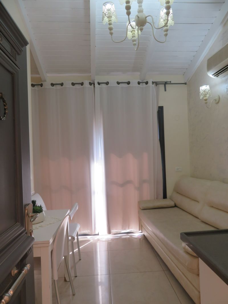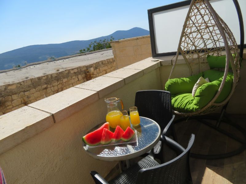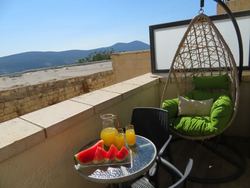 הכניסה לדירה היא דרך חצר פרטית המובילה לדירה נאה ומרווחת. במקום סלון גדול שבו ספות עור נוחות במיוחד, שולחן נפתח ל – 14 סועדים. משם יש יציאה למרפסת הצופה לנוף עוצר נשימה. עם נדנדת ספסל מזמינה לישיבה ולרוגע, בבסיס האירוח תקבלו כלי מיטה ומגבות.