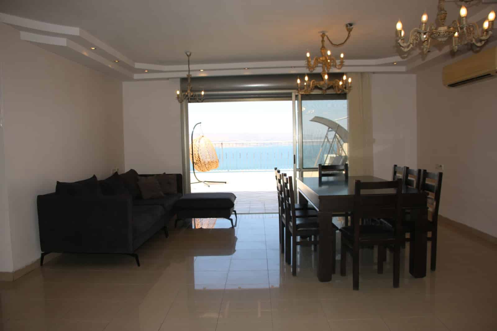 הסלון הגדול והמאובזר פונה אל מרפסת רחבת ידיים בשטח של כחמישים מטר, המשקיפה לנוף פנורמי מרהיב של הכנרת.