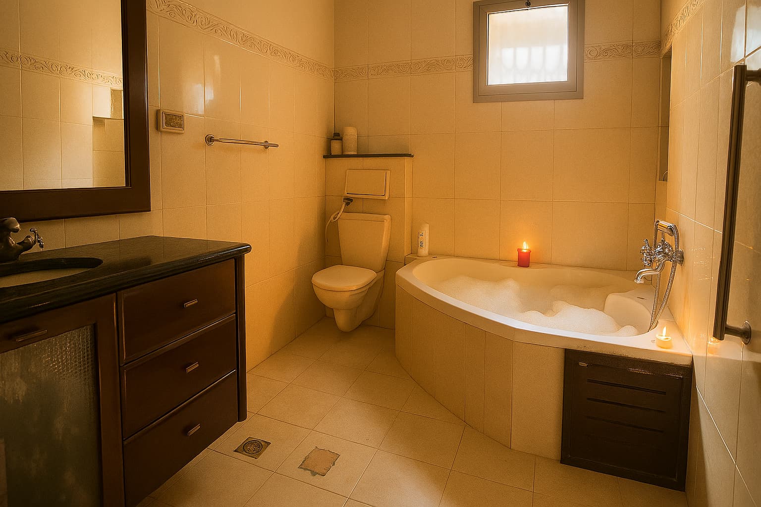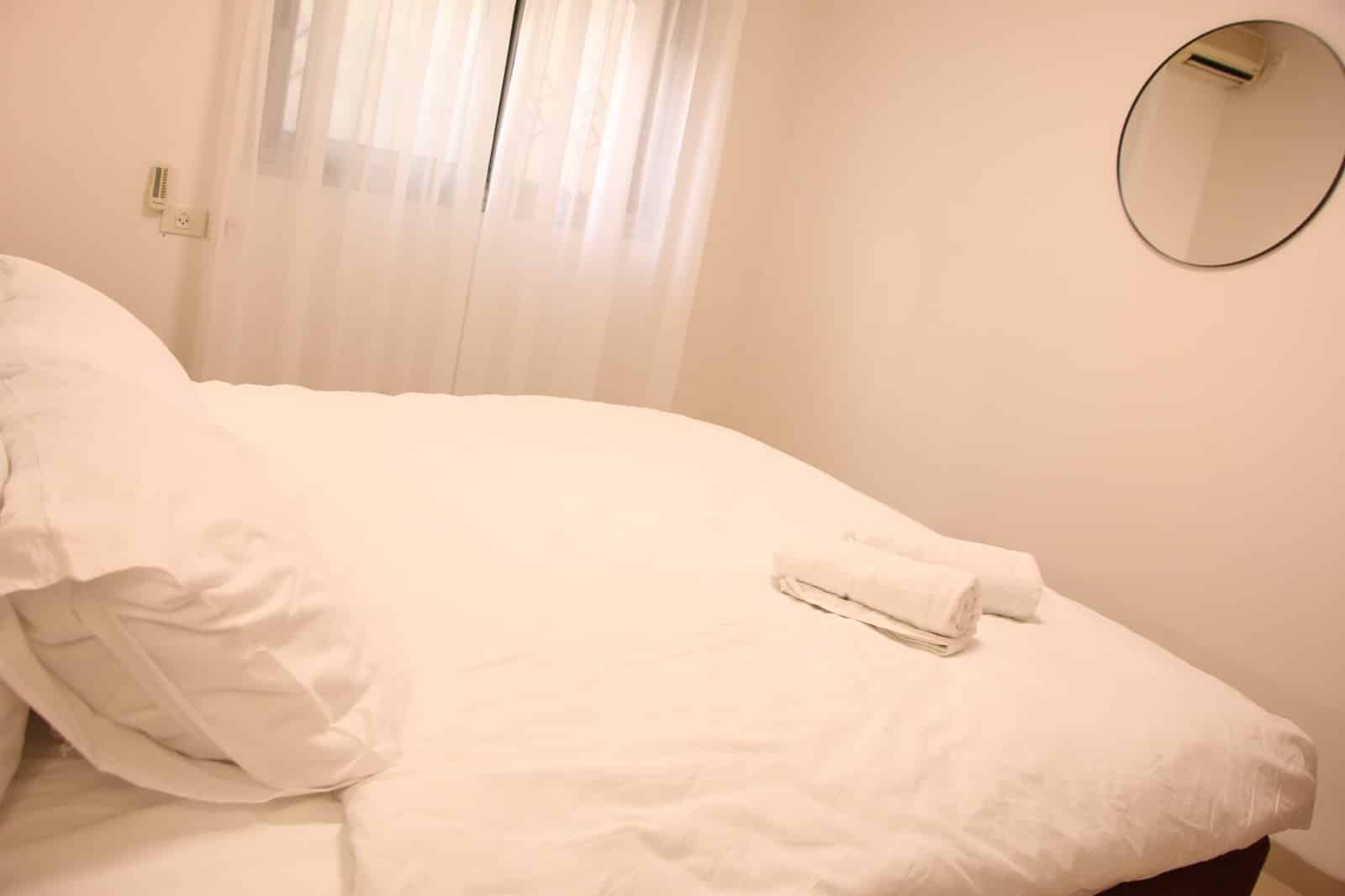 הדירה משתרעת על פני כ–160 מ"ר ומציעה חלוקה פנימית נוחה המותאמת לחופשה רגועה. החדרים מצוידים במיטות יהודיות, שידות, מצעים נעימים ומגבות, ובמרחב כולו פועל מיזוג מרכזי לצד מזגן בכל חדר. המטבח מחולק לשני אגפים נפרדים, חלבי ובשרי, כך שההתנהלות יומיומית מסודרת ונוחה, עם תנור גז וקולט אדים בצד הבשרי ומיקרוגל בצד החלבי.