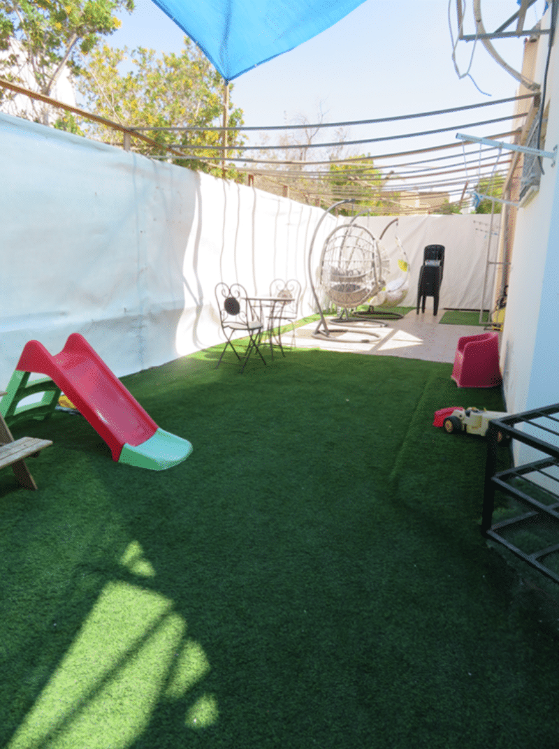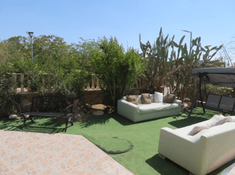 בחצר הפתוחה מחכה לכם בריכה ענקית מוקפת ערסלים, נדנדות, פינות ישיבה מוצלות וספסלים, לצד מרפסת רחבה שמזמינה לעצור לרגע, לנשום, ולהביט בשלווה של המדבר.