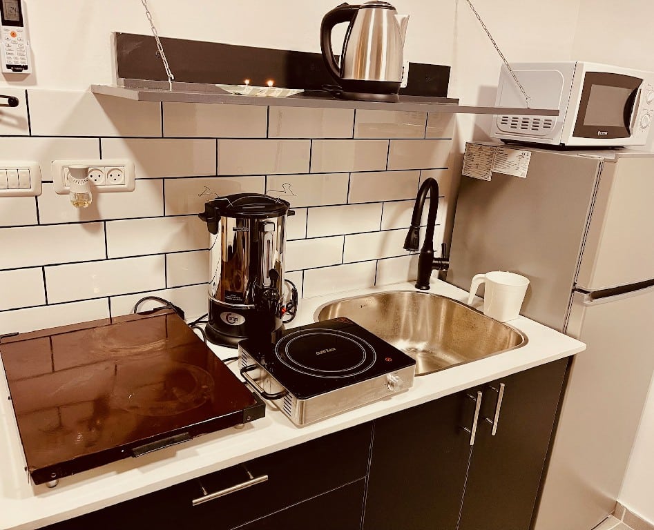 המתחם כולל בית פרטי, דירה ושלושה צימרים, כל יחידה מעוצבת בקפידה ומציעה נוחות, ופרטיות מלאה.