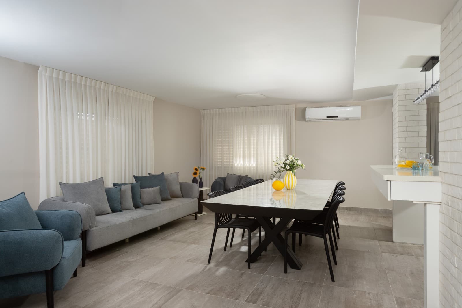 פינת אוכל וישיבה, מזגן.
