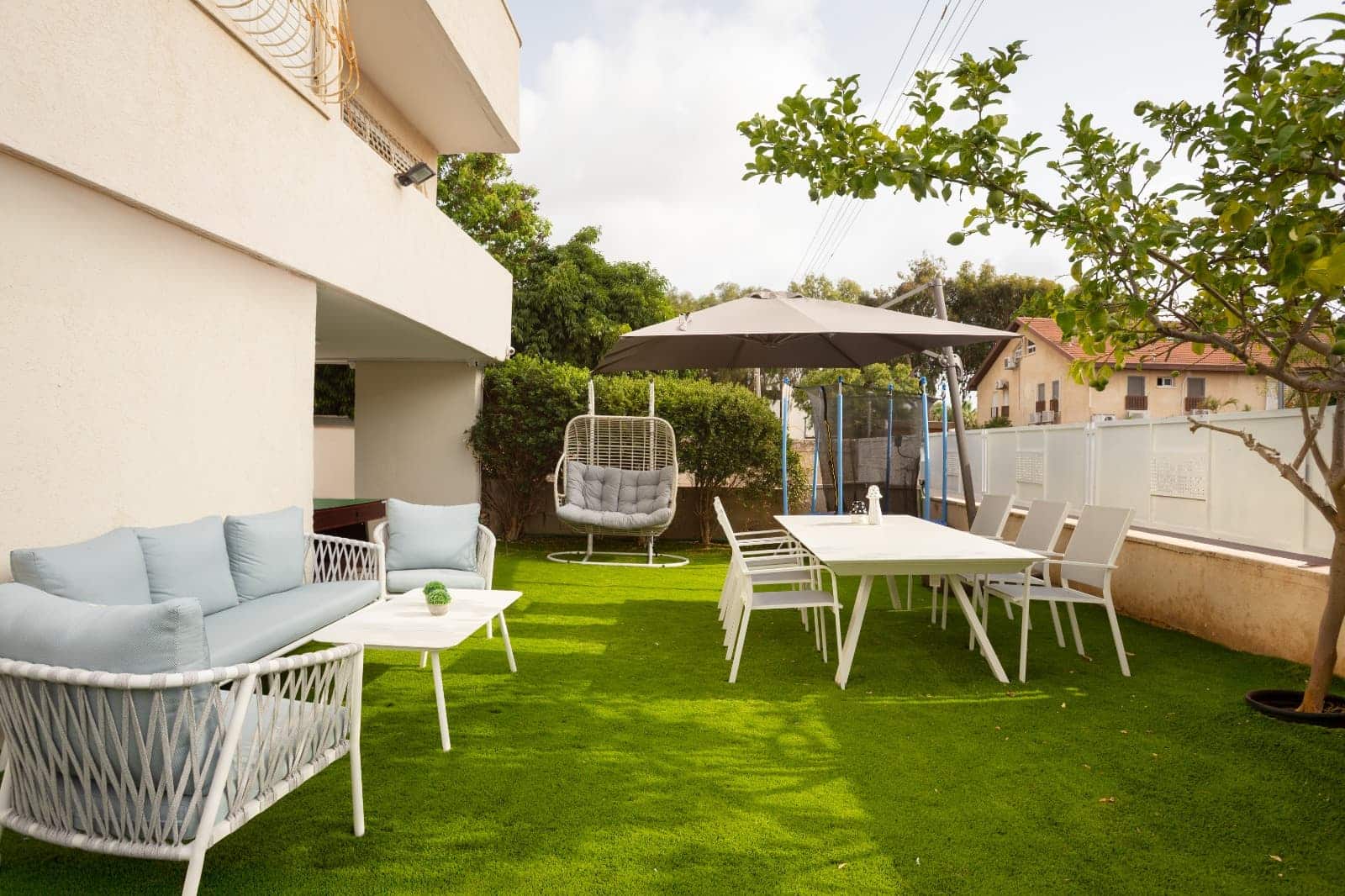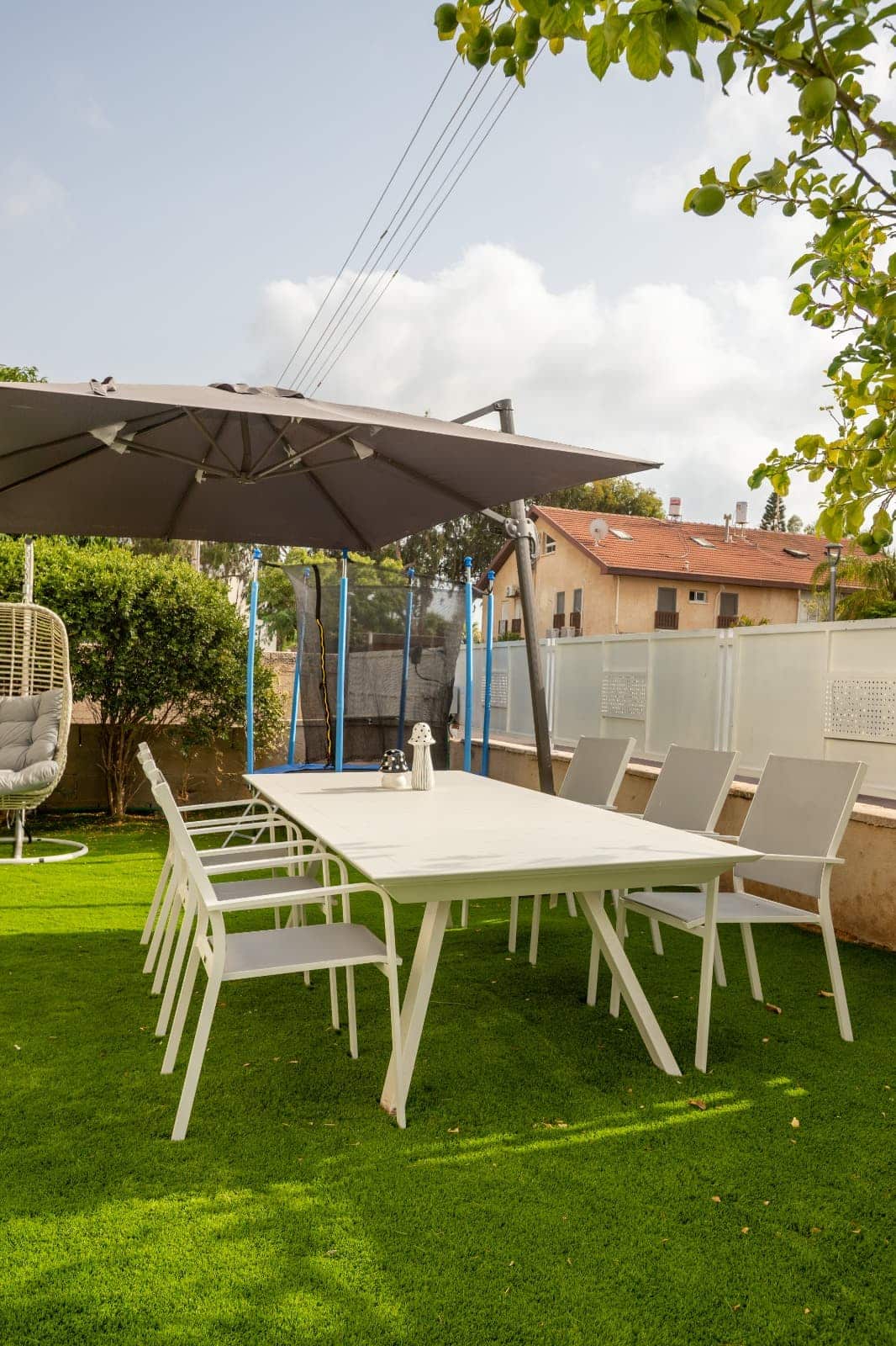 • חצר משותפת ענקית כוללת טרמפולינה לילדים.