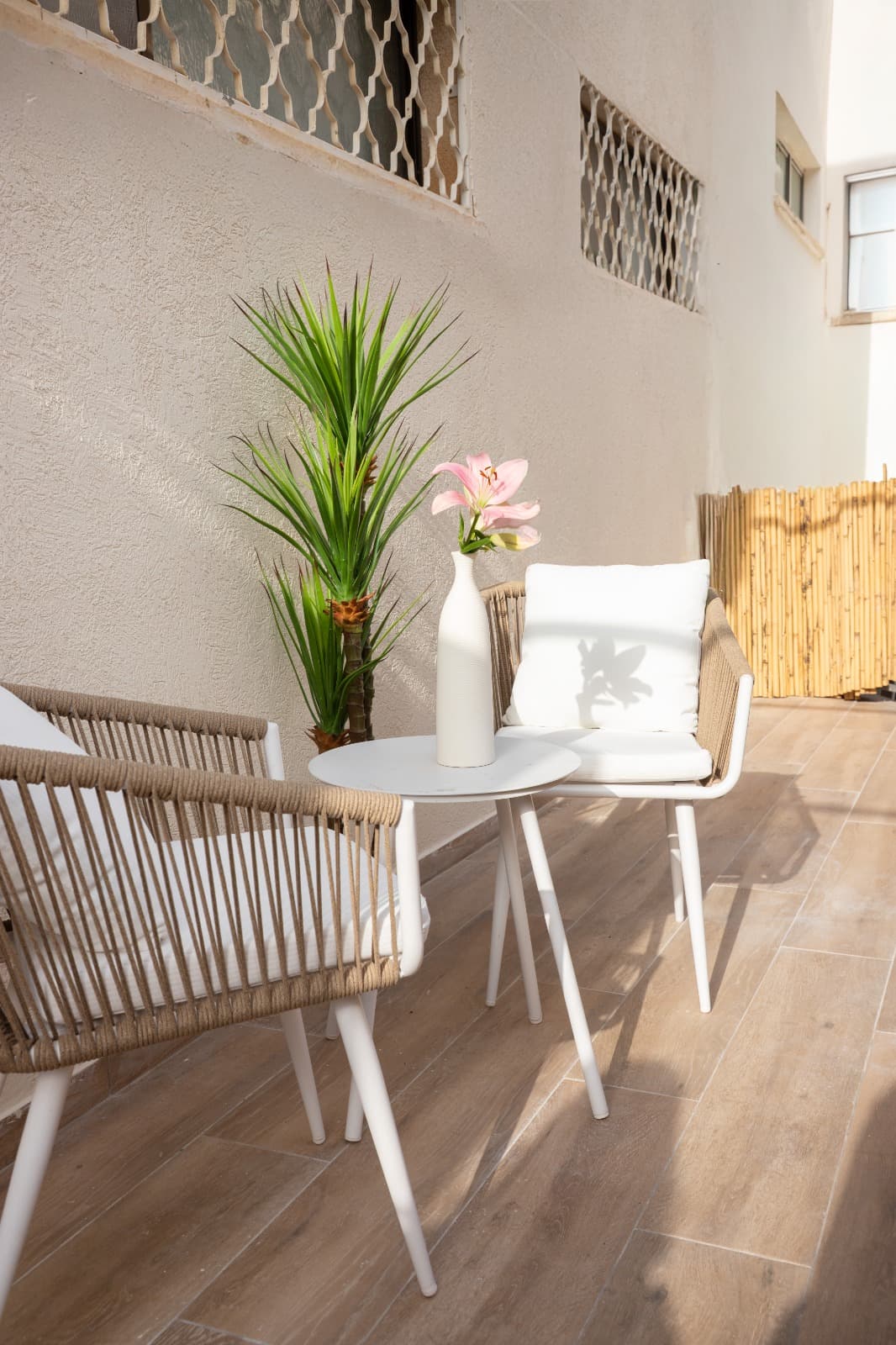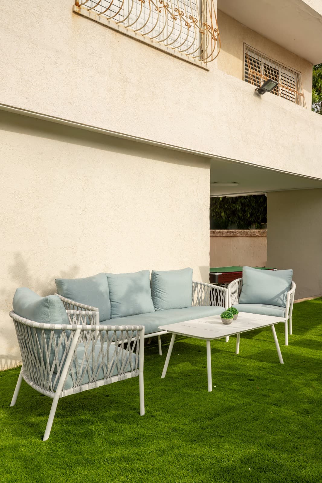 • ריהוט גן חדיש ומפנק בגג הוילה -עם נוף מטורף ואויר ים צלול.