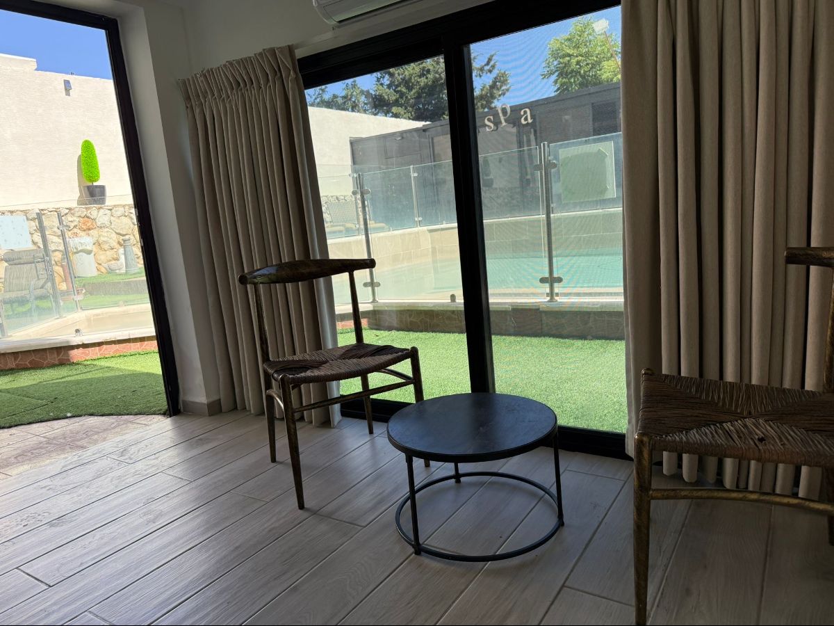 חצר האחוזה רחבת הידיים יוצרת תחושת חופש ופסטורליות ומזמינה לעצירה אמיתית מהשגרה. במרכזה ממוקמת בריכת שחייה גדולה ומחוממת, מקורה ומתאימה לשימוש בכל עונות השנה, עם מערכת תאורה וזרמי מים להשלמת חוויית הרחצה. לצידה נמצא מתחם ספא מושקע הכולל ג’קוזי רחב ידיים וסאונה יבשה, לצד פינות ישיבה נוחות, מיטות שיזוף ותאורת ערב רכה, המאפשרים מנוחה והתרגעות באווירה שקטה ונעימה. לרשות האורחים עומדות גם פינת ברביקיו מאובזרת ומטבח חוץ, המיועדים לאירוח משותף ולשהייה רגועה בחצר.