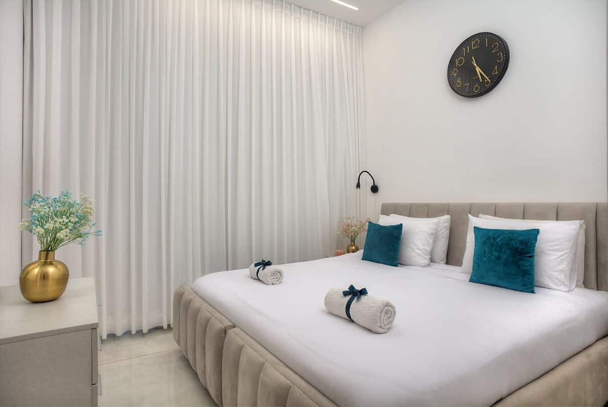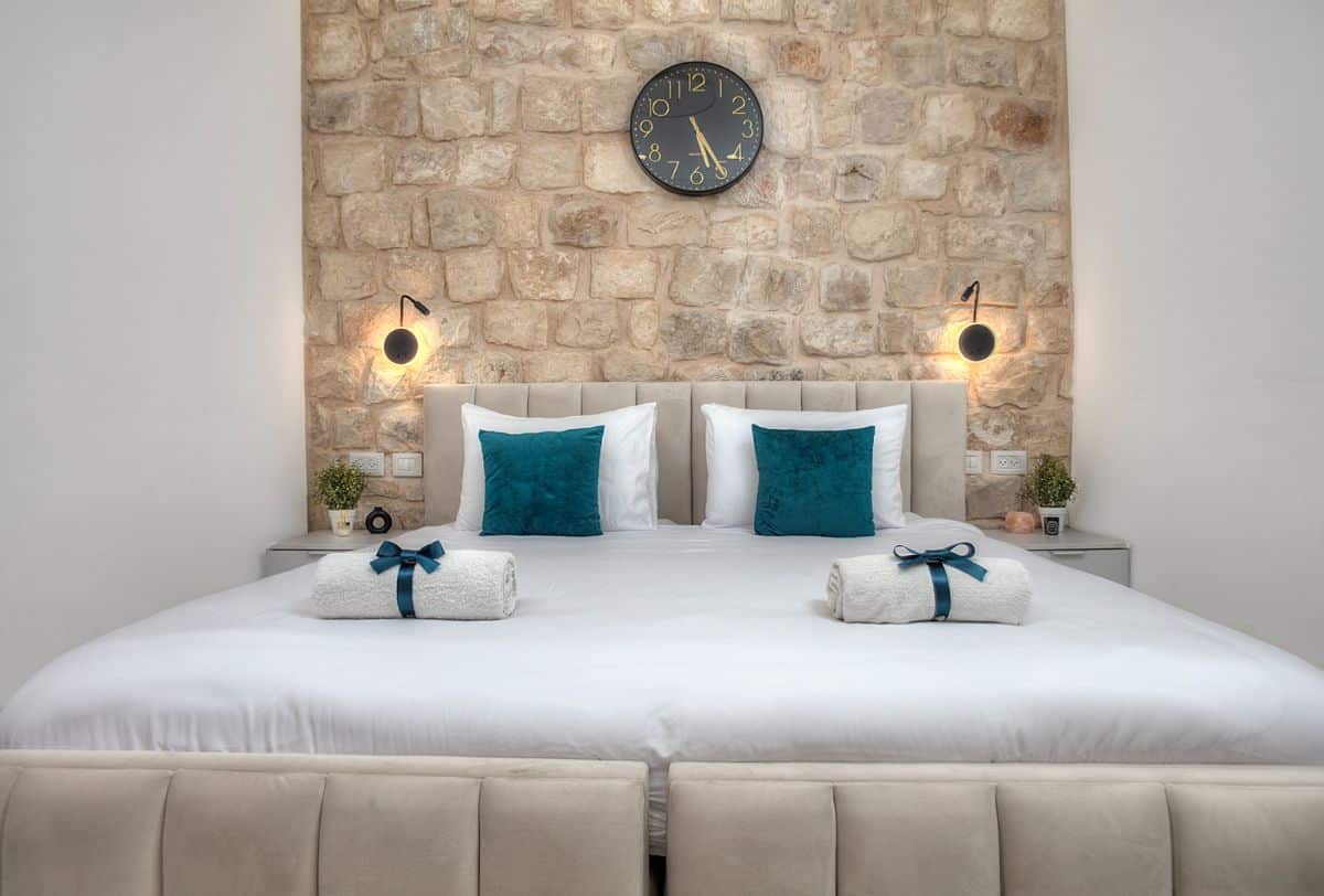 • מיטה זוגית גדולה עם מצעים איכותיים.