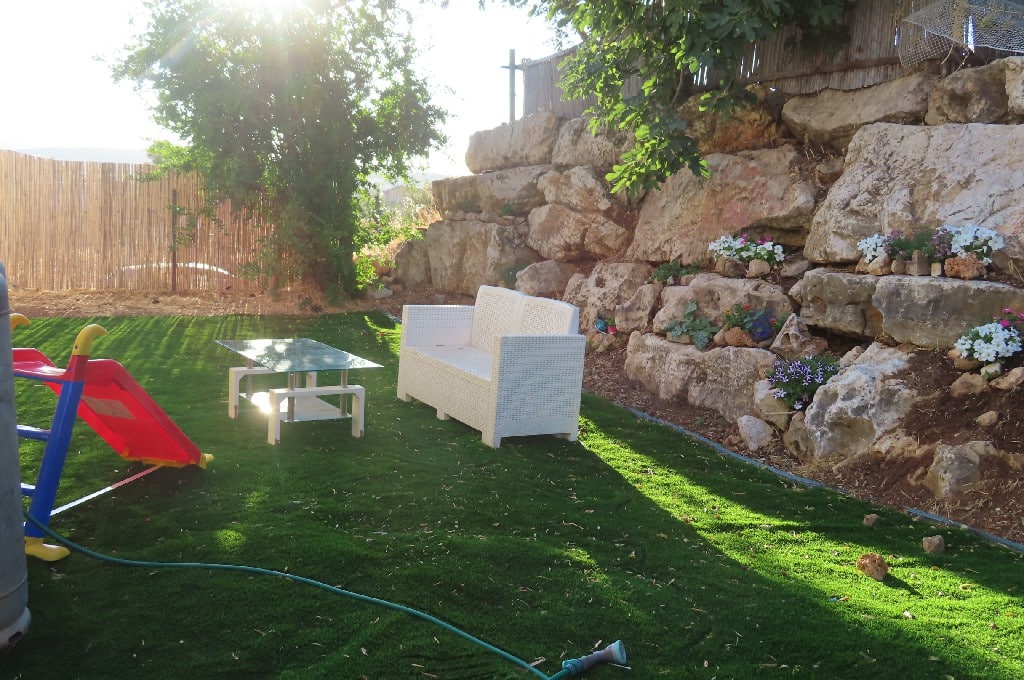 החצר הפרטית והסגורה היא גולת הכותרת של המקום חצר גדולה עם דשא סינטטי, פינות ישיבה, ערסלים, נדנדה וטרמפולינה לילדים, לצד בריכה מוצנעת במתחם סגור, שולחנות משחק, מנגל מאובזר ושולחן אוכל חיצוני. מהמרפסת ומהחצר נשקף נוף פתוח ומרגיע אל הרי מירון וציון הרשב"י, נוף שמלווה את השהות ומוסיף תחושת מרחב ורוגע.